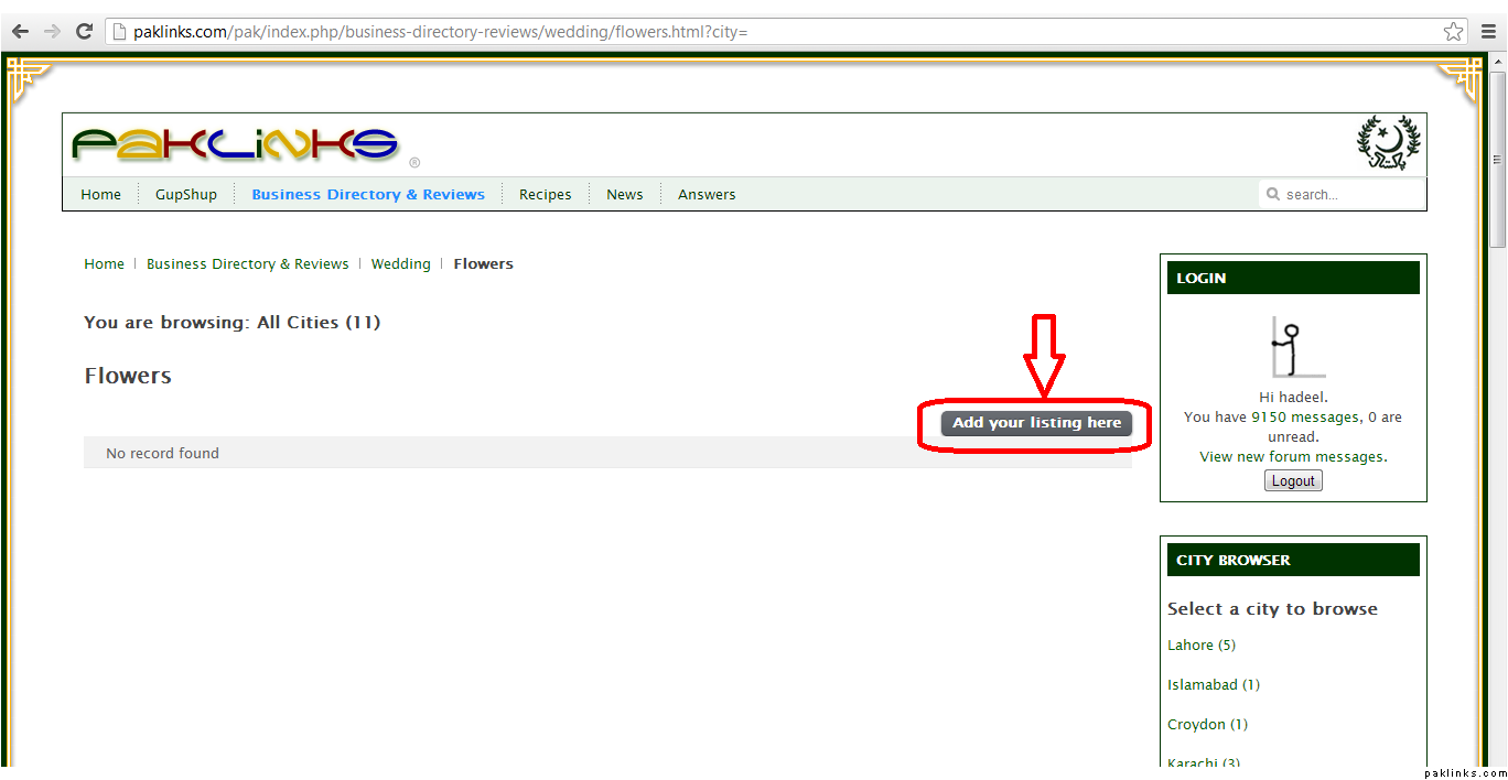 After you click Flowers, you will be brought to the next page to enter your listing. Click on “Add your Listing here”