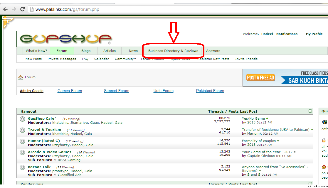 To open Business Directory and Reviews: