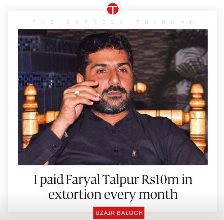 He also disclosed that PPP MNA Faryal Talpur, sister of party co-chairperson Asif Ali Zardari, was given Rs10 million extortion every month. According to the alleged gangster, Dr Saeed Baloch and Nisar Morai were posted to the fisheries department on his recommendation.