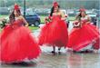 St Mary’s Cathedral was bedecked in red and white flowers when the bride arrived – accompanied by eight bridesmaids.