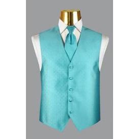I would say it depends on the groom and his style. if he wants to do that then why not. Also for the color combo i would say dont keep it monochromatic. I think cream vest with ferozi tie would look great. it would def look better without the suit coat.