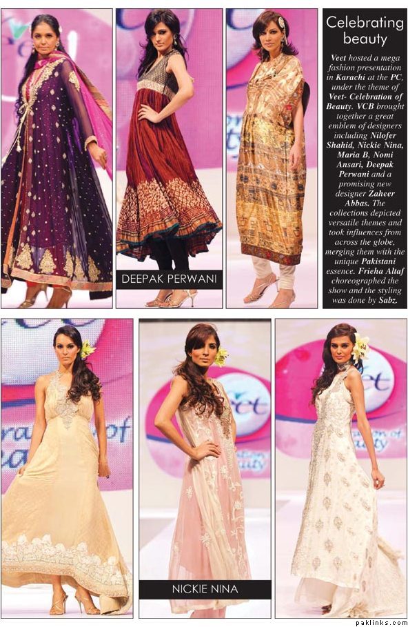 This leads us to the show “Veet- What beauty feels like” which was held at the PC Marquee in Karachi on 28th May 2009 showcasing a celebration of beauty and femininity through some of the finest ambassadors of Pakistani Fashion. A Catwalk Productions presentation featuring an exclusive dance performance choreographed by Omar Rahim and collections of Top Pakistani designers such as HSY, Nomi Ansari, Khaadi Khas and Maheen Khan.