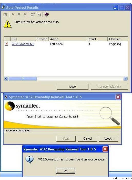 I have run the tool. it says that W32.Downadup has not been found on your Computer. and at the same time i m getting the warning Popup ![]()