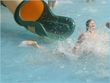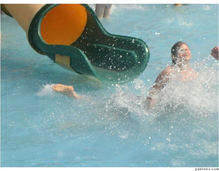 This was an accident - as SHE emerged from the water slide