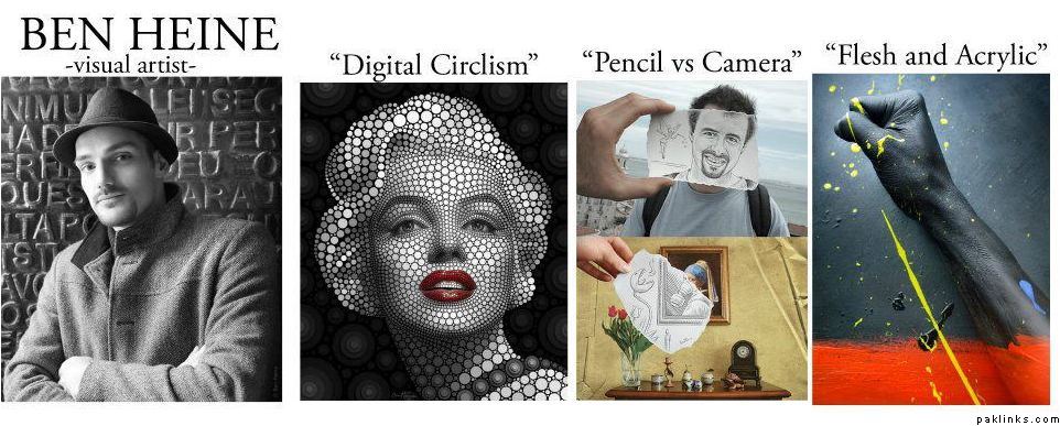 BEN HEINE (born June 12, 1983 in Abidjan, Ivory coast) is a Belgian multidisciplinary visual artist. He is best known for his original series “Pencil vs Camera“, “Digital Circlism” and “Flesh and Acrylic“.