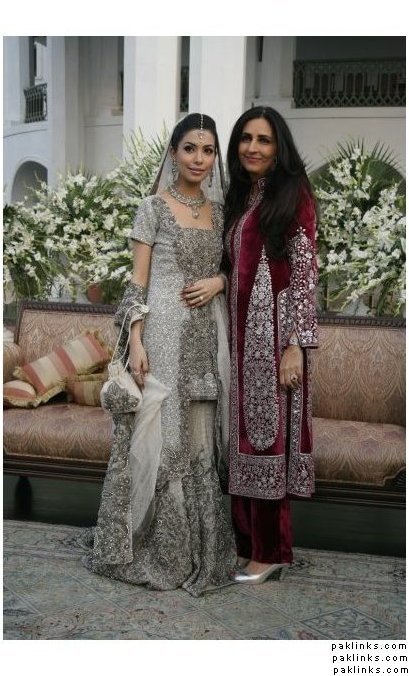 They decided on a beige gold shirt and dupatta and a mint green gharara with emerald green pipings and kaam all over,etc. something in these colours: