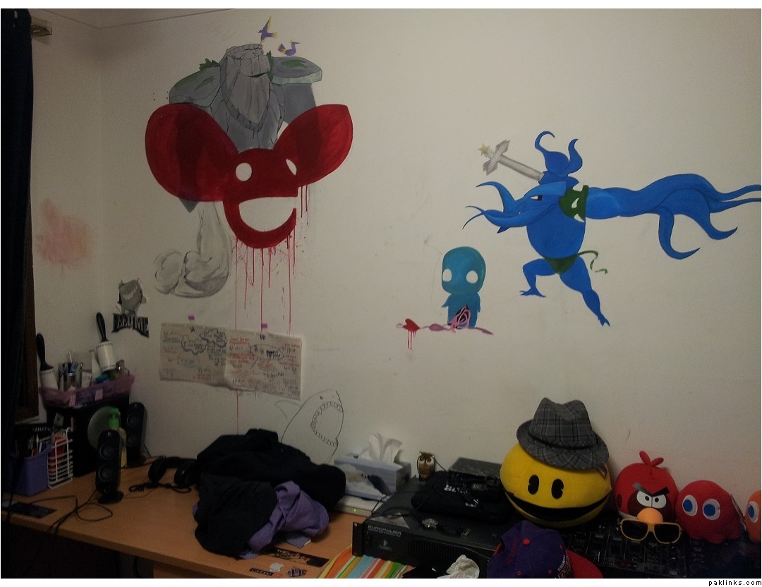 I’m not the artist in my family, but my brother is. This is what his wall looks like. Looks a bit greusome but I think he’s done a fantastic job.
