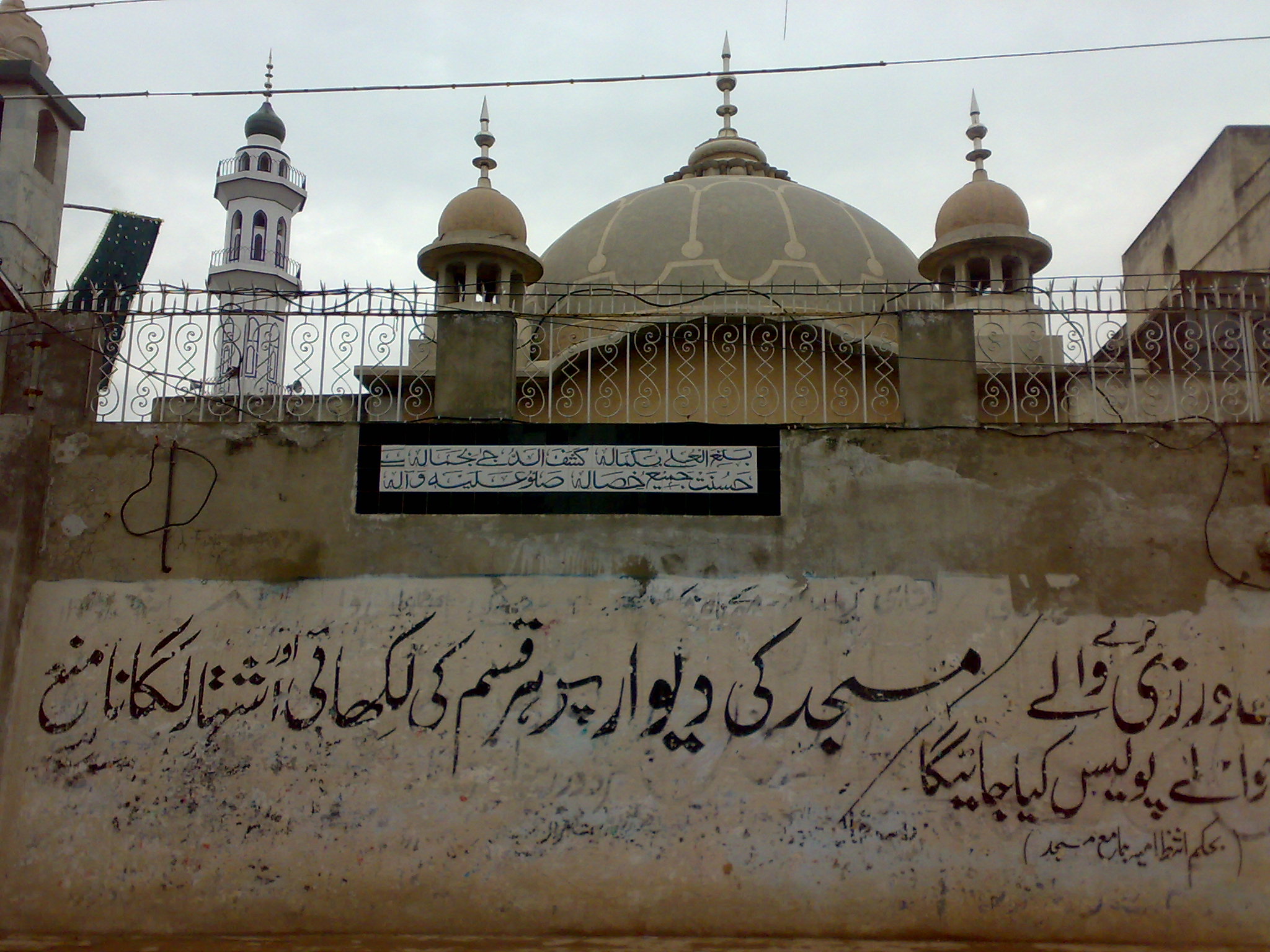Masjid ki deewar per her qism ki likhai aur ishtehaar lagana mana hai