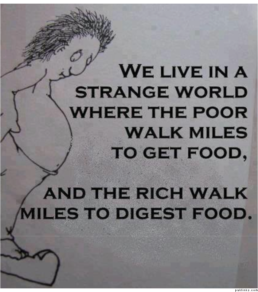 Not true in USA. USA has its own unique problems. The obesity rate is highest amongst families who live under poverty line. Rich people are thin and slim while poor people are fat