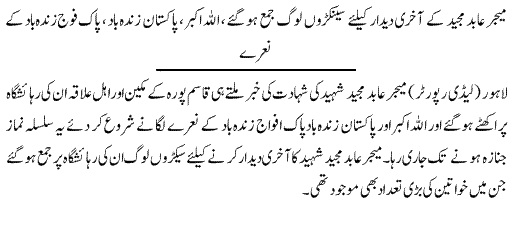 Moreover, the army has cordoned off several narrow alleys of Mingora to prevent the Taliban from escaping. The military has cordoned off Swat from the northeast (the Shangla side), the southeast (the Buner side) and the southwest (the Dir side). In Mingora city itself, the Taliban are reported to be lying dead in the streets and local people confirm that some of them are well-known Taliban leaders.