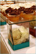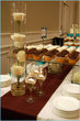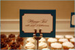 we placed them on sheets of glass raised up in square glass vases with roses inside. her jora was ivory and turquoise so we used turquoise ribbon to accent everything. i got the metal initials for their cake from www.weddingstar.com, and i designed tags for each flavour that was along the same lines as their wedding and day-of stationery. this was by far the funnest part of planning their valima!