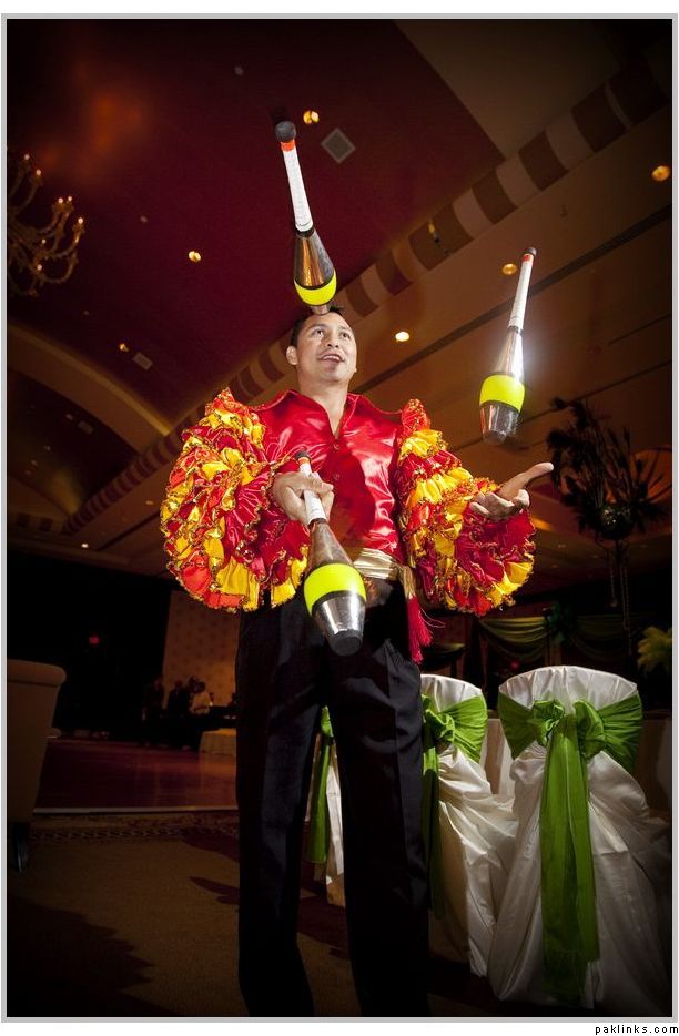 This couple went above and beyond for their amazing wedding. The event had a circus theme. They hired a contortionist , aerialist, jugglers and even a dancer walking on stilts as multiple forms of entertainment.