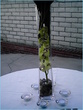This one below has been made with plastic orchids. They look real under the water with crystals added for “bling” at the bottom of the vase and a few on the leaves.