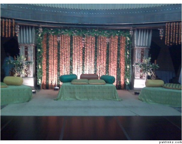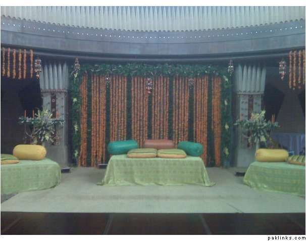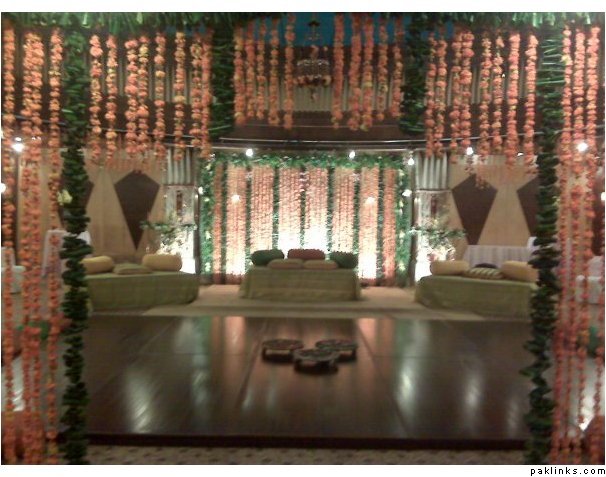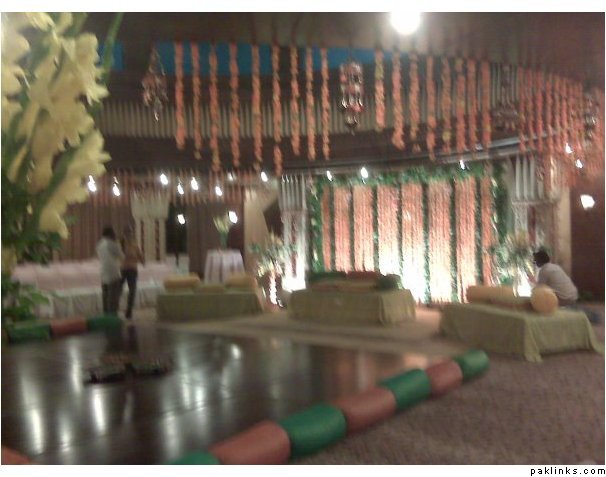 a wedding last night. i posted the picture of the mehndi in another thread. this is the barat. i have to say this was the most unique decor i have ever seen of a wedding in pakistan. this was in royal palm grounds. they did not have chairs. just the lounges. the dinner was in another area with roundtables. it was around 2500 per person. one dish btw as per law.