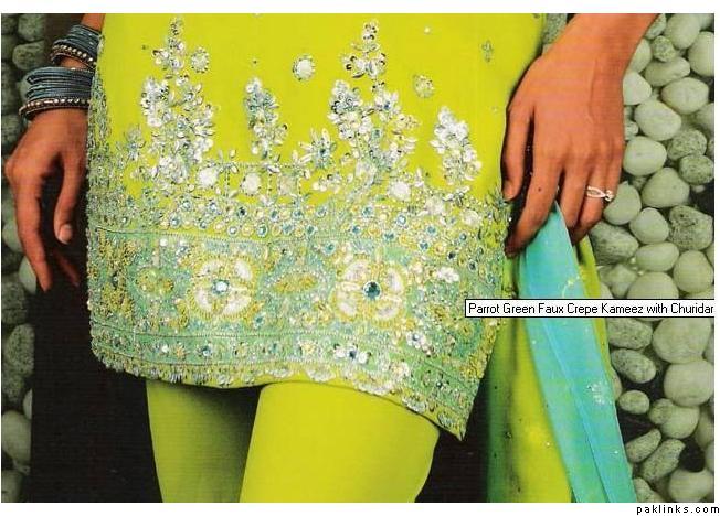 In the green pic above it looks like goeta and sheesha and maybe sequin work but if you want it for a bridal dress then ur better off using other kind of work that gives off the similar sparkly type of look.