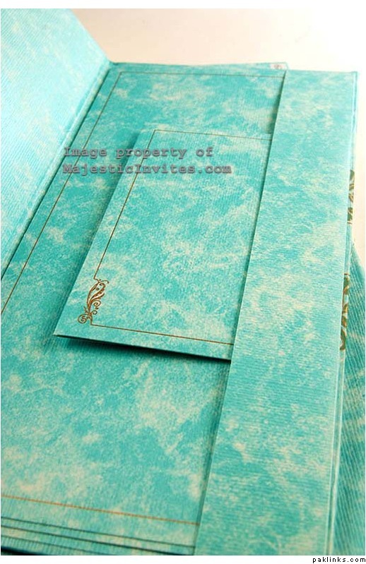 Turquoise-Gold Pocketfold Invitation with Lace, Beads and Sequin Embellishments: