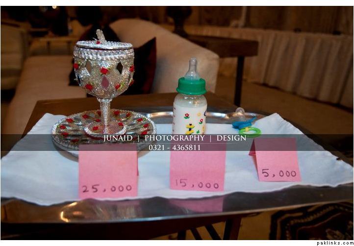 The one you are talking about happens after the wedding when the bride comes back to the inlaws. The youngest male on the groom's side sits on the bride's lap. Meant encourage her to have sons! She then gives him money. Also there is no set limit. My cousin's son wanted toy cars when his chachoo got married!