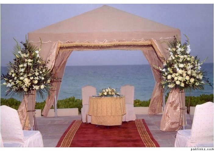 you can have beach wedding only after october since its v hot at day time n humidity is v high.......... beach weddings are excellecent idea but i never saw any here in dubai for al qasar hotel i l ask my huby n let u know n house rents have gone v low in dubai these days especially in sharjah i l check the prices n let u know.........