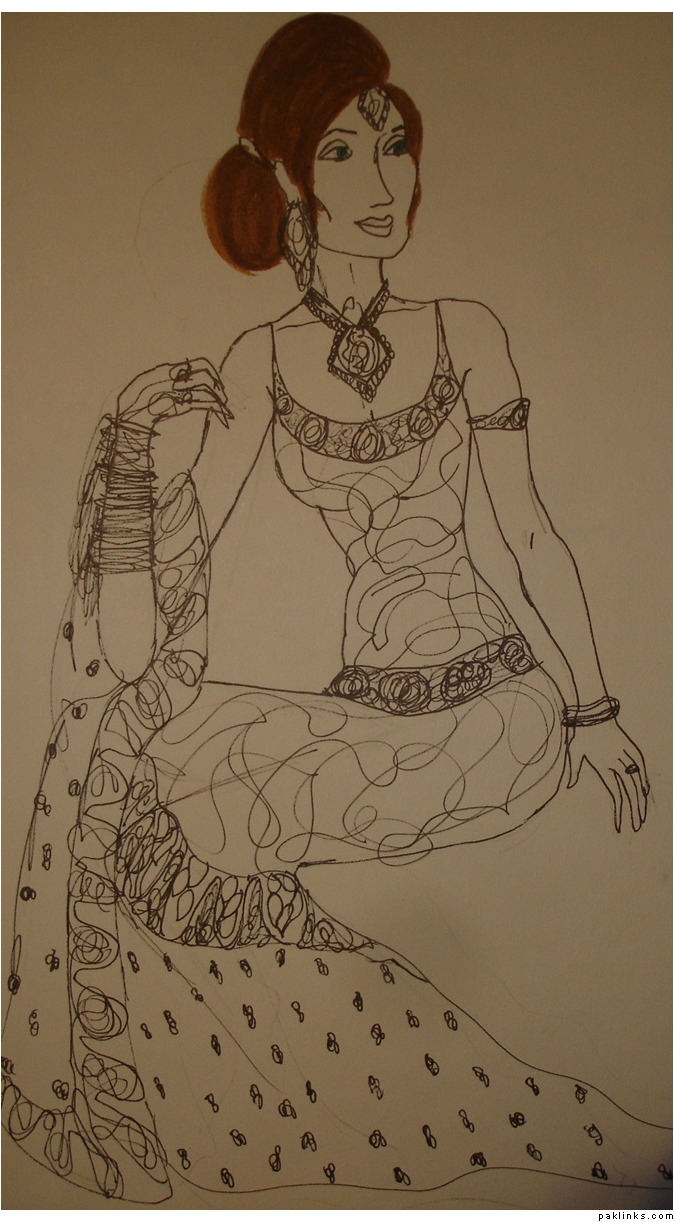This is one of my finished sketches and i am stumped as to what colour combo to use on this, ive used gold/white, pinks and blues so many times.. any suggestions ![]()