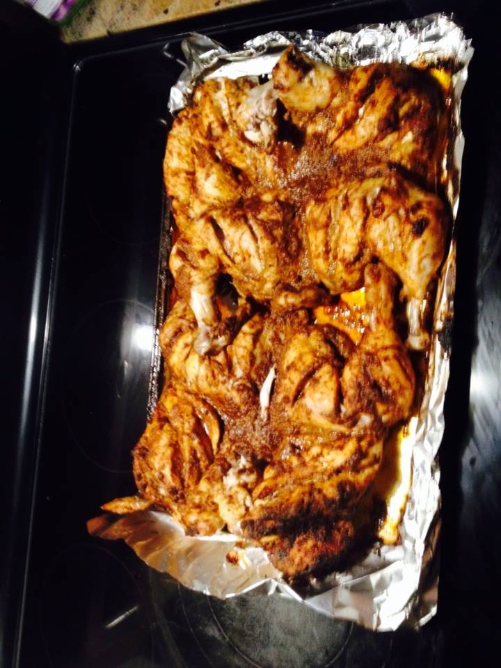 Remove from the oven, uncover and let cool until you are able to handle the garlic. Squeeze the roasted garlic out of the peel and discard the peels. Mash the garlic with a fork and whisk it into the olive oil-herb mixture. Brush some onto hot grilled chicken ,serve the rest as for dipping.