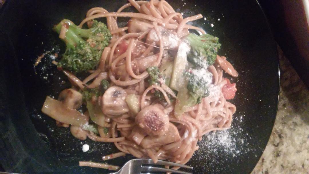 Thursday night is our vegetarian night, so we made Mushrooms & Broccoli pasta.