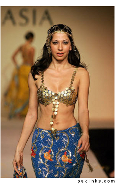**Miss Afghanistan Vida Samadzai presents Indian fashion designer Priya Awasthi’s creation during the Bridal Asia 2005 fashion show in New Delhi India **