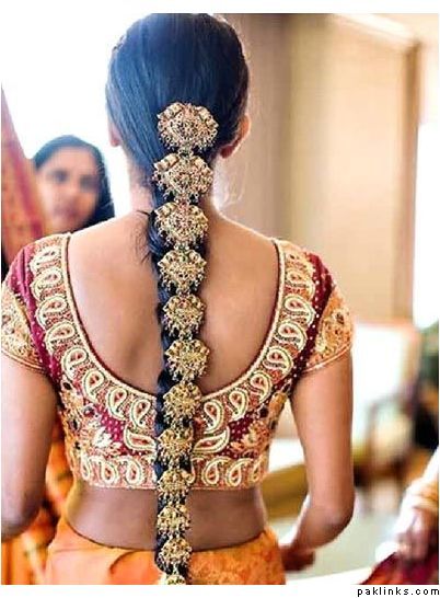 It’s kinda similar to this S. Indian hair plait decoration (I forget what it’s called), except the paranda like I said goes in the hair, whereas this is pinned on top of the hair