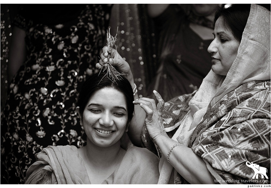 Similar ceremony is held for the groom, where bride’s mother, sisters, cousins and friends bring “ubtan” for groom and rub it on his skin.