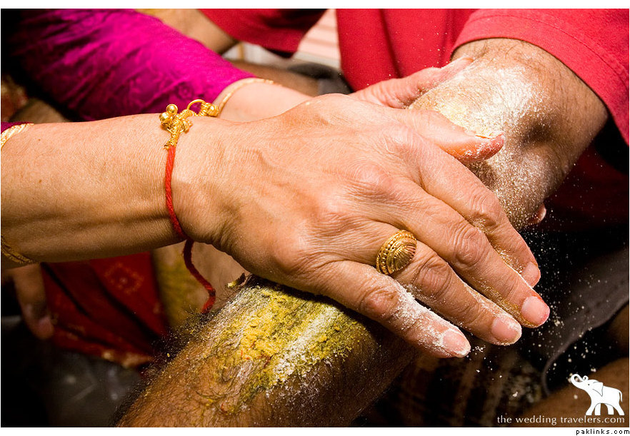 i dnt no how to spell it but im talking bot the thing before the mehndi whre u get layered in haldi and wot not to get sum roop or to jst make u yellow! lol!