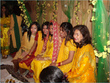 Generally the bride’s family give bangles and sometimes clothes to her friends, depending on what the family can afford. The bride usually wears a simple yellow shalwar kameez or a pink one. Hyderabadi brides usually wear yellow khara dupattas and have elaborate ubtan trays brought up called suhaag puras.