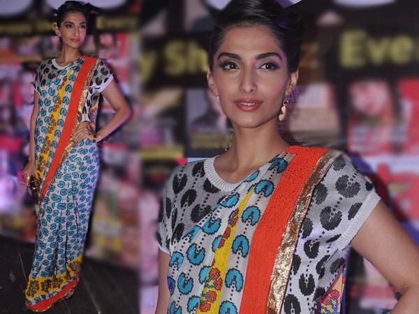 “We dont know if Sonam’s into gaming but we know for sure that she loves sporting the print on her clothes. We love the quirky look of the saree. This look is fun and yet Oh so glam. Everything from her accessories to her hair and makeup is bang on. Way to go girl! Way to go!”