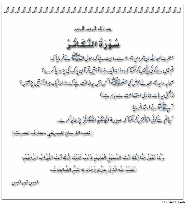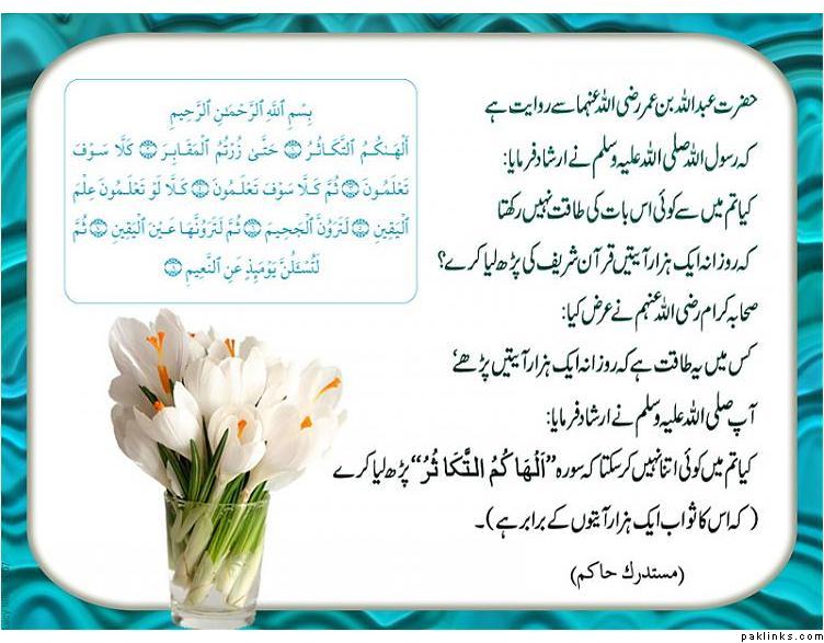 Re: What is the translation of these benefit of Sura Takasur?