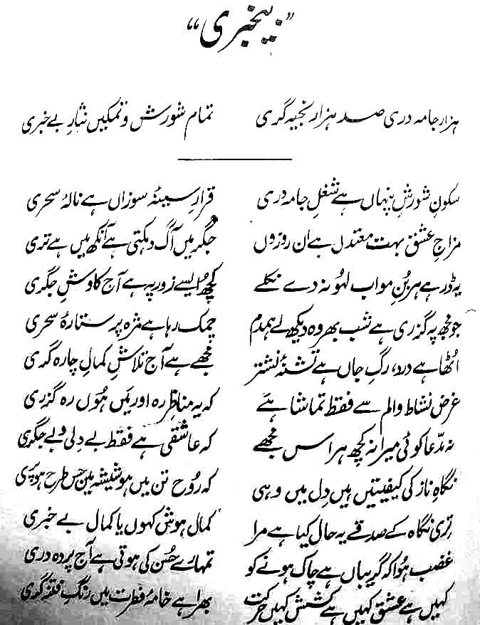 this nazam entitled “Be_Khabarii”: