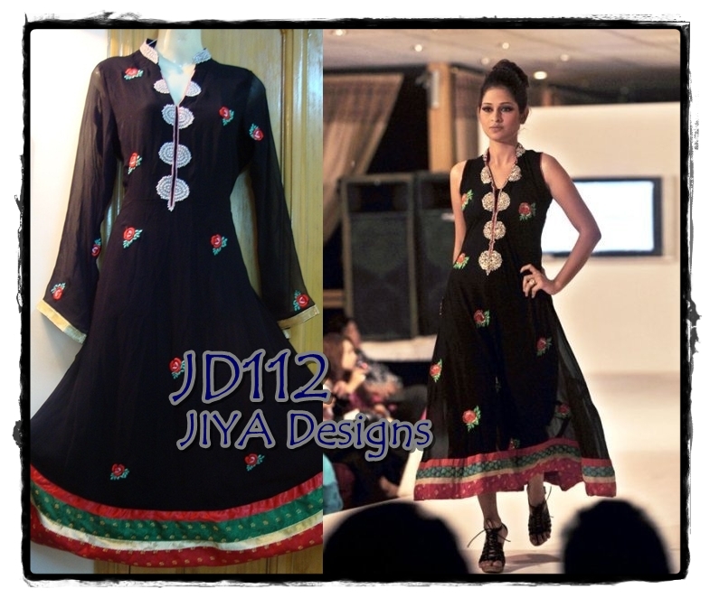 I dont know how much black kapra u have , u can also make a very flowy dress with a diamontie motif on neck .. But for this u need atleast 4 - 5 gaaz kapra :-)
