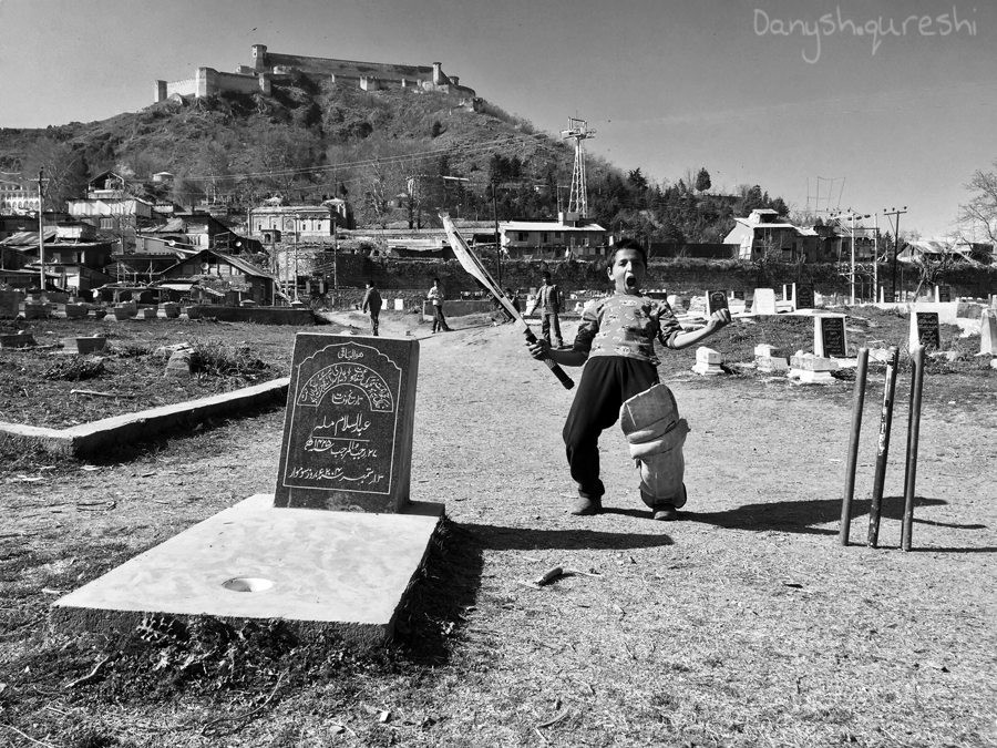 An enthusiastic child in Kashmir, who scored 23 runs for his team and won them the match.