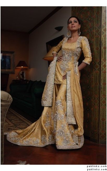Find a design that you like and change the colour. I really like a red Aisha Khadeeja creation but they have made it in many different colours. If you have a big budget then you can go for a designer gharara.
