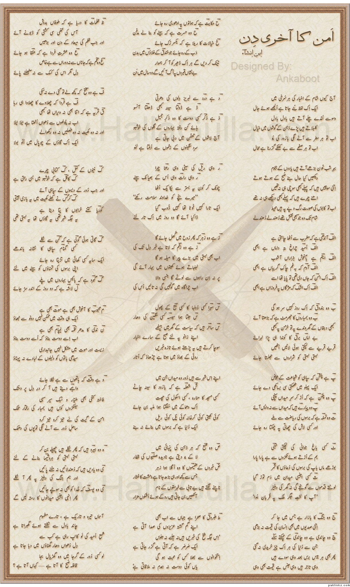 At this juncture--I must also declare myself as one of those very fortunate ones *(TARIQ..yaar meri GRAMMAR theek hai na?? LOLLZ:)) who have actually met, talked and discussed poetry and their great works.. with icons like Faiz Ahmed Faiz, Ibne Insha, Ahmed Nadeem Qasmi, Raees Amrohi, Josh Malihabadi, Qurat'ul'ain Haider and Qateel Shiffai. Its such a great feeling--and a very nostalgic one!!!***