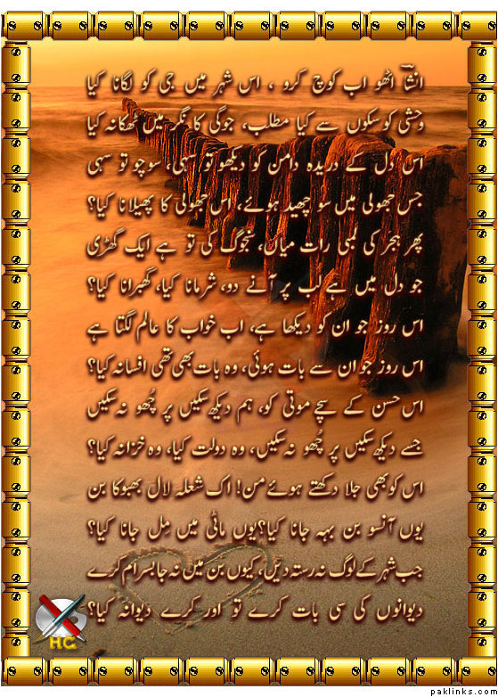 Since you have spitted categorically on notewordy poets of urdu language, quoting them more here, for you, would be like presenting common respectable pakistani citizen infront of Pakistani police. They simply wont show any respect.