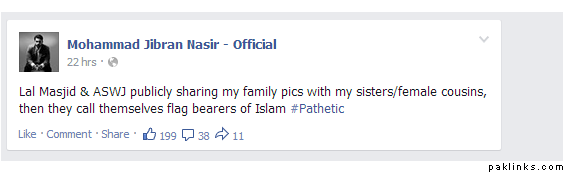 Why is he being hateful when on his page he has asked people to speak respectful words of the people who curse him? what about Lal Masjid/ASWJ publicly sharing his family pics/pics of his sister