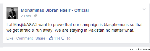 Reputation of Lal Masjid was known much before Jibran started talking about them. They are the ones who rebelled on state and fired on soldiers. Was Jibran responsible for the Lal masjid siege and Musharraf taking Pakistani forces inside Lal Masjid? Will you say same for them? Since then Lal Masjid had plenty of time to reform themselves and focus on actual issues. what is with all their cursing of west and all people of west? Is West also responsible for Junaid Jamshed escaping there after blasphemy charges?
