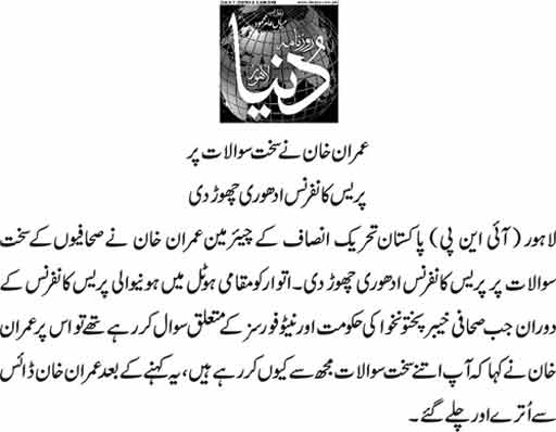 The questions were supposedly about NATO forces. Perhaps you can clarify how Imran Khan is in a position to answer any questions about NATO forces or drone strikes, both of which are federal issues…and on which the federation is refusing to do anything.