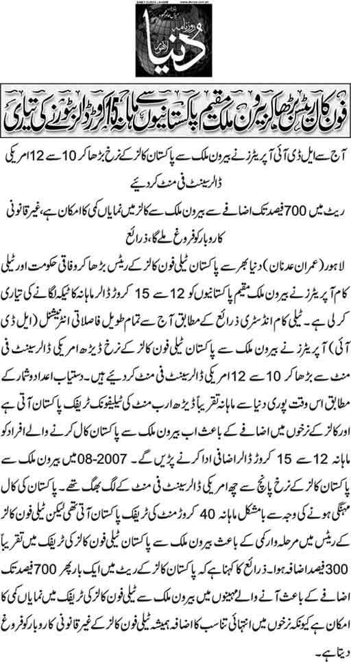 Just checked my email and it is indeed true that our beloved Pak government has increased some tax which means most people calling to Pakistan from overseas will have to pay 5-7 times more.