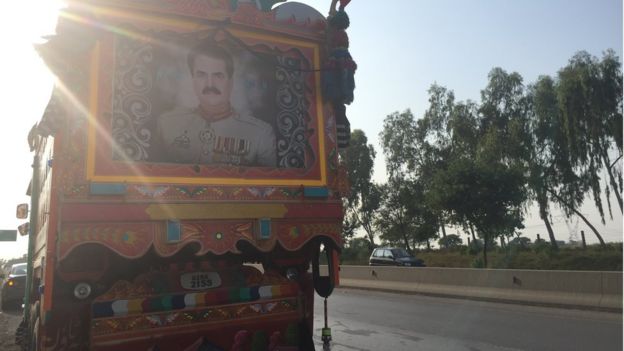 Image captionImages of General Raheel Sharif can even be seen on car bonnets along with other Pakistani leadersThe general is set to retire next year and Mr Yousaf, who describes himself as a “disillusioned worker” in Prime Minister Nawaz Sharif’s party, says the general’s term must be extended to continue the fight against terrorism.
