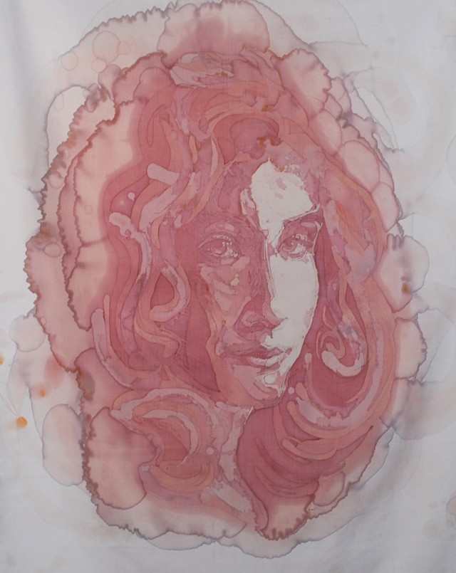 A portrait artist at heart, I am particularly intrigued by the challenge of trying to control the unpredictable nature of wine bleeding through fabric in order to channel the equally imprecise nature of a person’s character. In addition, the sacred aspect of wine lends itself to religious iconography, reminding many of the Shroud of Turin: one who drinks wine may come to feel a certain level of saintliness sipping on this liquid form of divinity. So, this is a form of consecration.