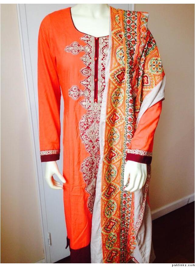 I got one suite from LSM embroidered shawl collection too...Orange with beige color shawl...I will be selling it. Orange is neon orange and style of gala/material very ordinary. Their summer collection was disappointing too...winter is the same.