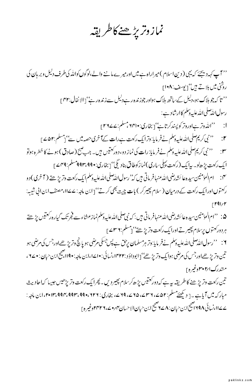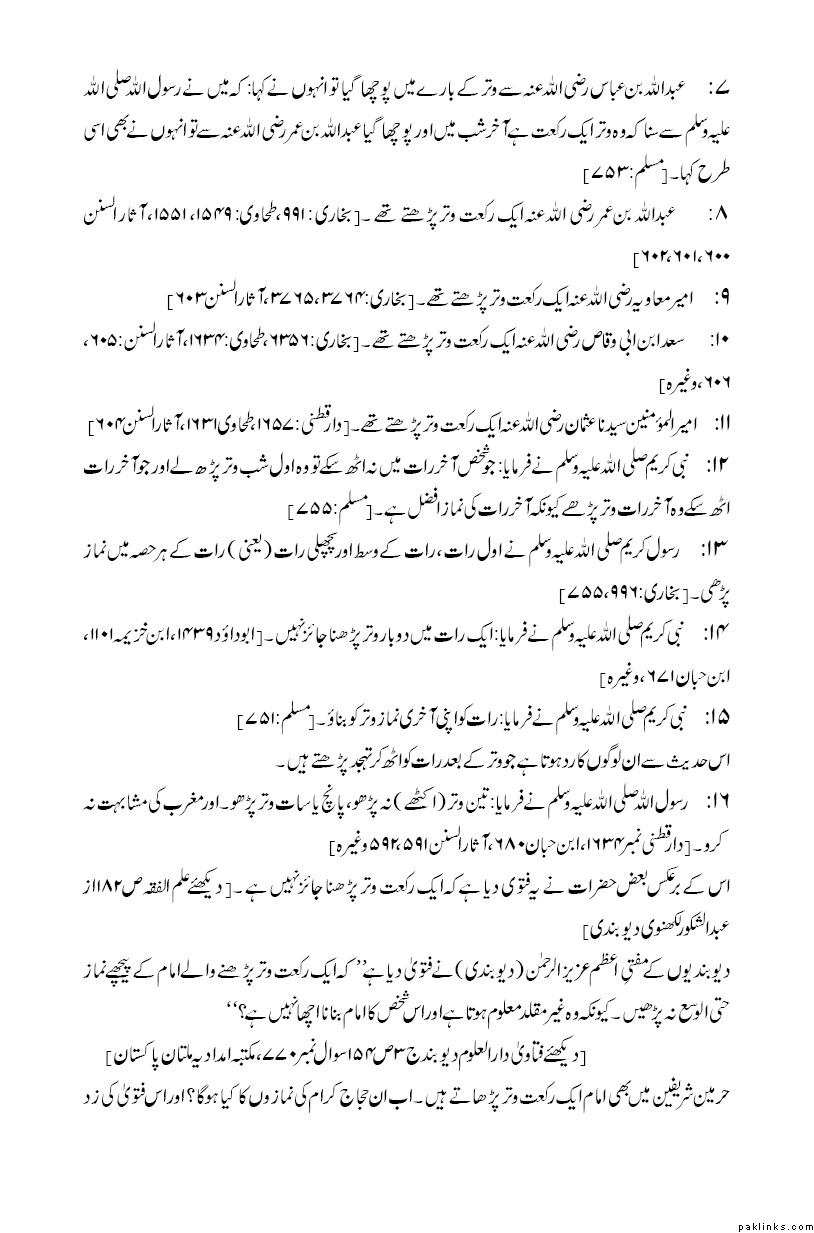 **Book ‘Prayer (Kitab Al-Salat): Detailed Injunctions about Witr’ of Sunan Abu-Dawud Hadith No 1417.