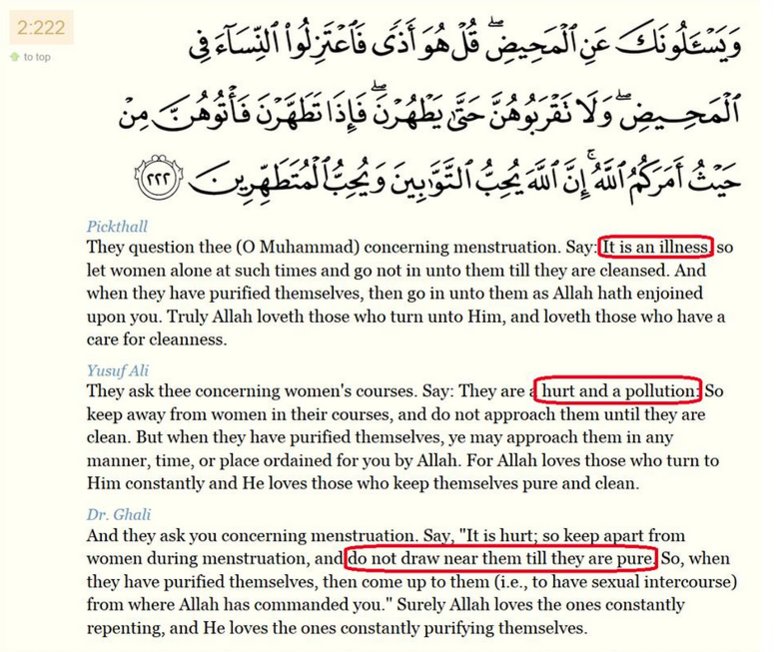 Lauren, my previous comment was only partially adressing the post. I wanted to first clarify, that the Quran only advices to abstain from sex during menses for several obvious medical reasons.