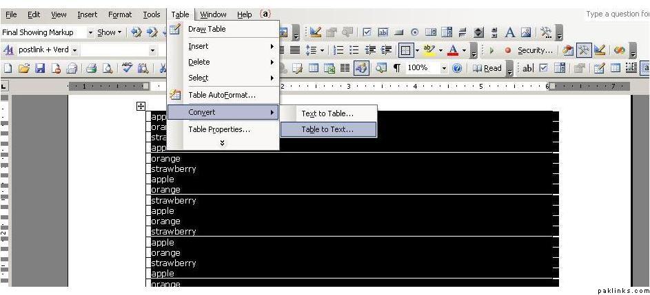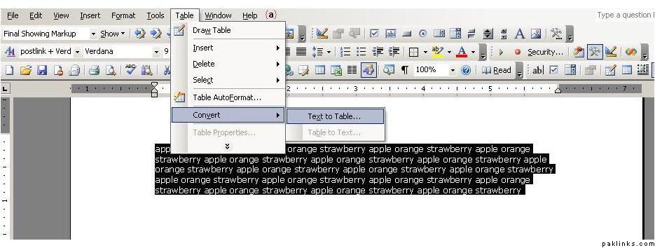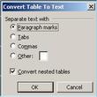 To convert the data 1st select all the data then select Table>Convert