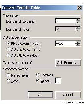 select 1 in number of columns n then enter a Space as the text separater after selecting the Other option. This will convert all your data in a single columned table. Now select this table and then again select Table > Convert