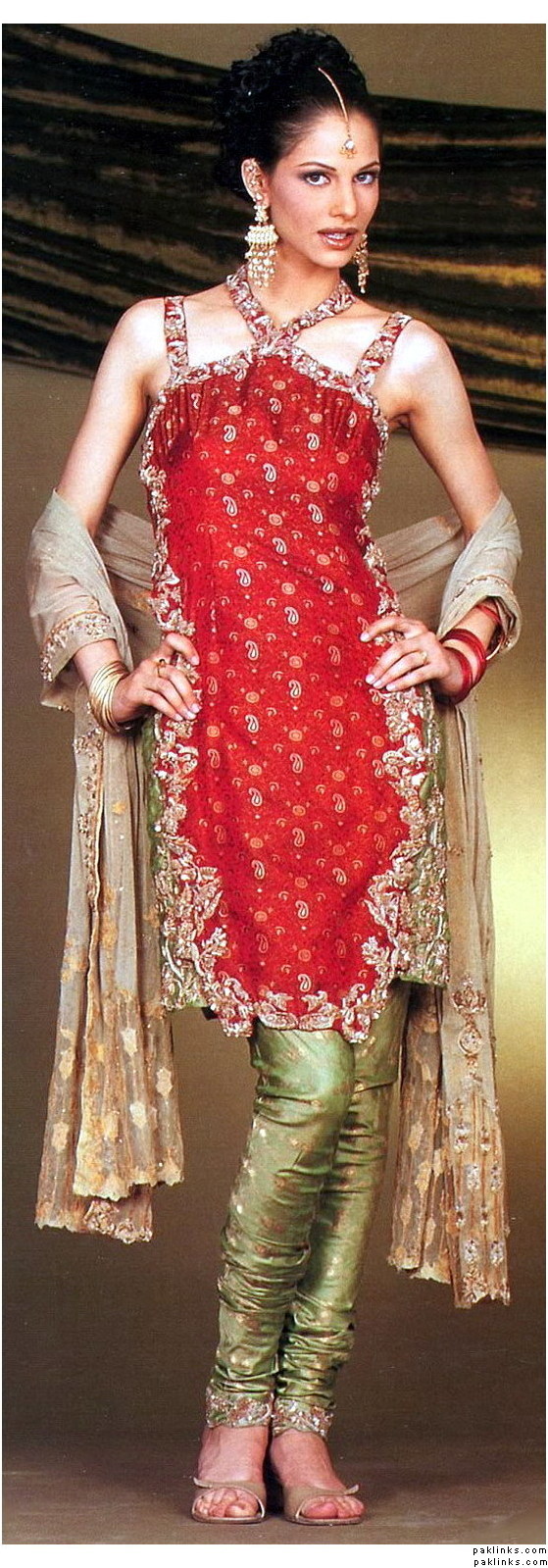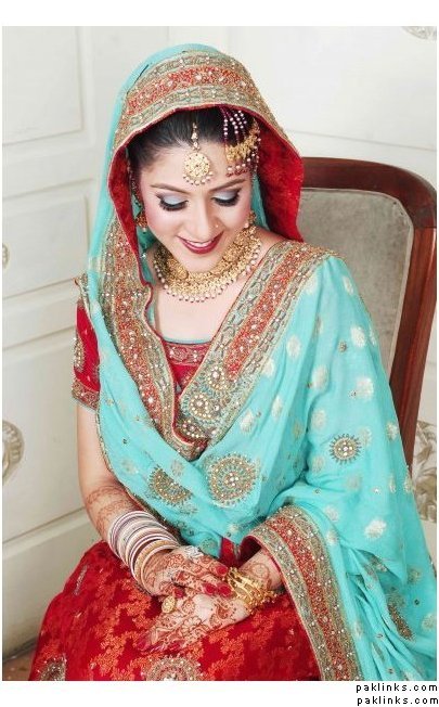Also I have looking for a picture of a bride in my PC but God knows how did I delete it and cant find it anymore. If any of you have it, could u plz post it over here. The bride is wearing exactly what I am talking about. Her duppatta and shirt are kinda cream or skin color and her lehnga is red with golden kaam on it. She is wearing green jewellery with green eye make up. Dulha is wearing some white sherwani i guess. If you could post it, it will be much appreciated.